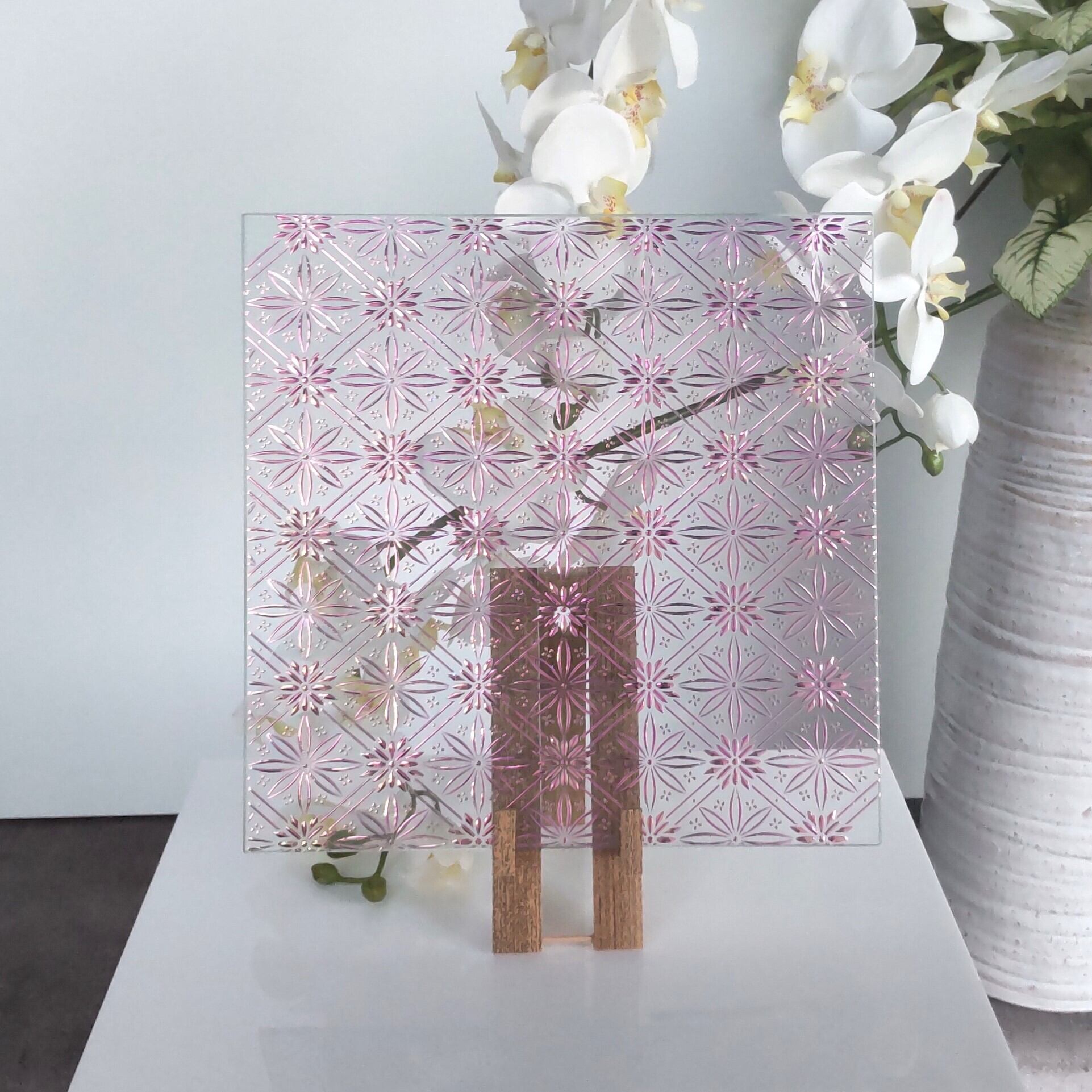 京友禅金彩ガラス_オーロラ ≪格子花≫(玉虫箔)
