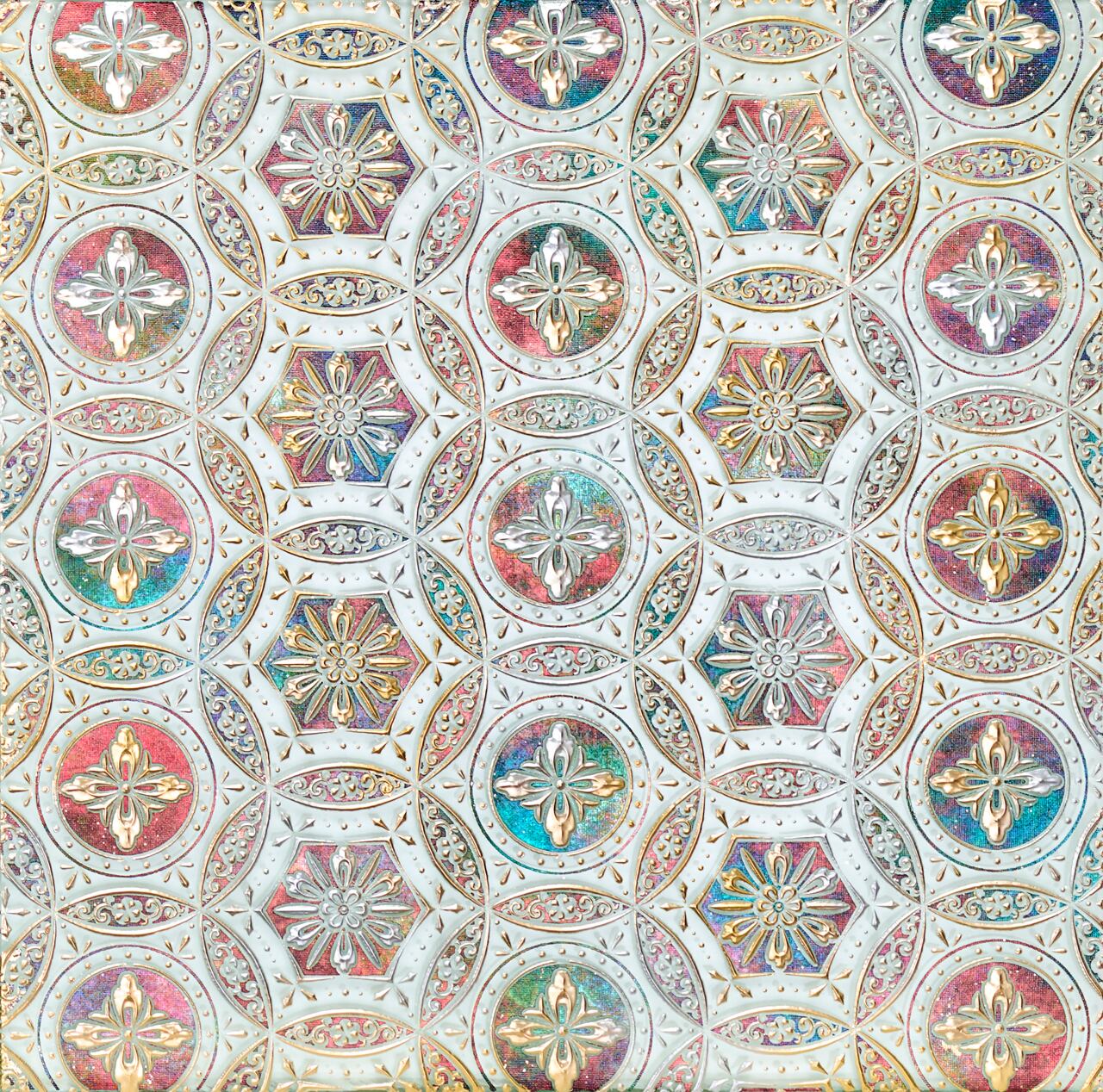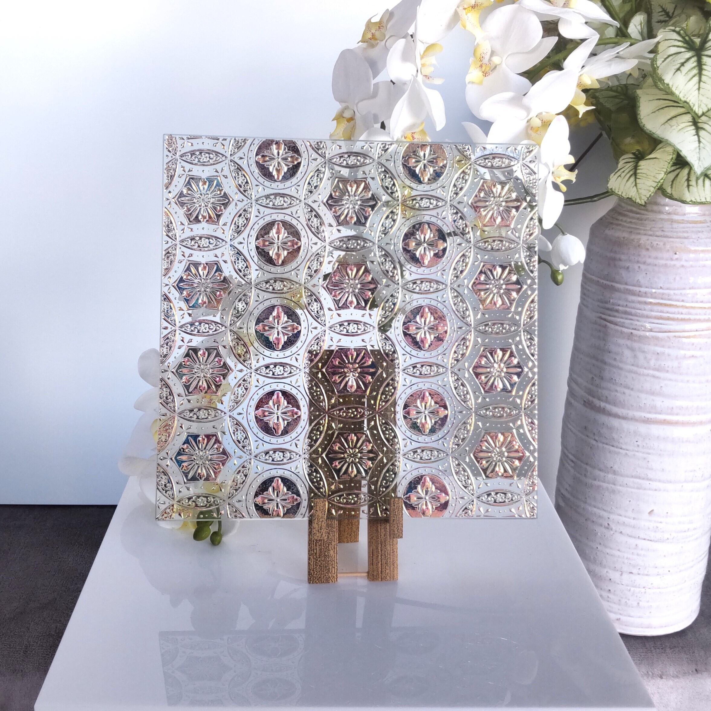 2,ガラス板に京友禅金彩技法でデザインしました。